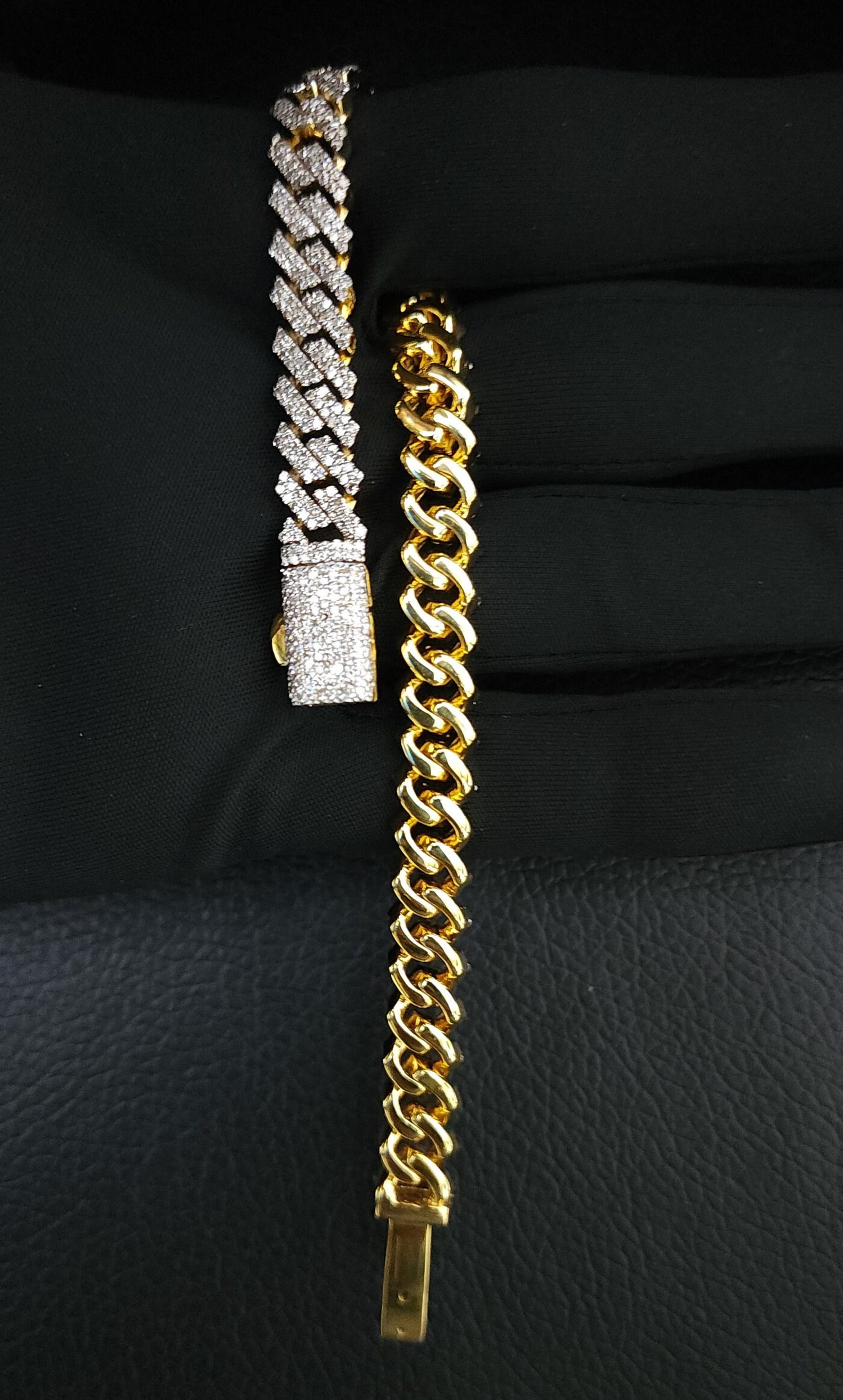 Iced Out Miami Cuban 8 mm Link Bracelet Made In 10 KT Gold Embellished With Shinny Moissanite Diamonds For Anniversary And Birthday Gift