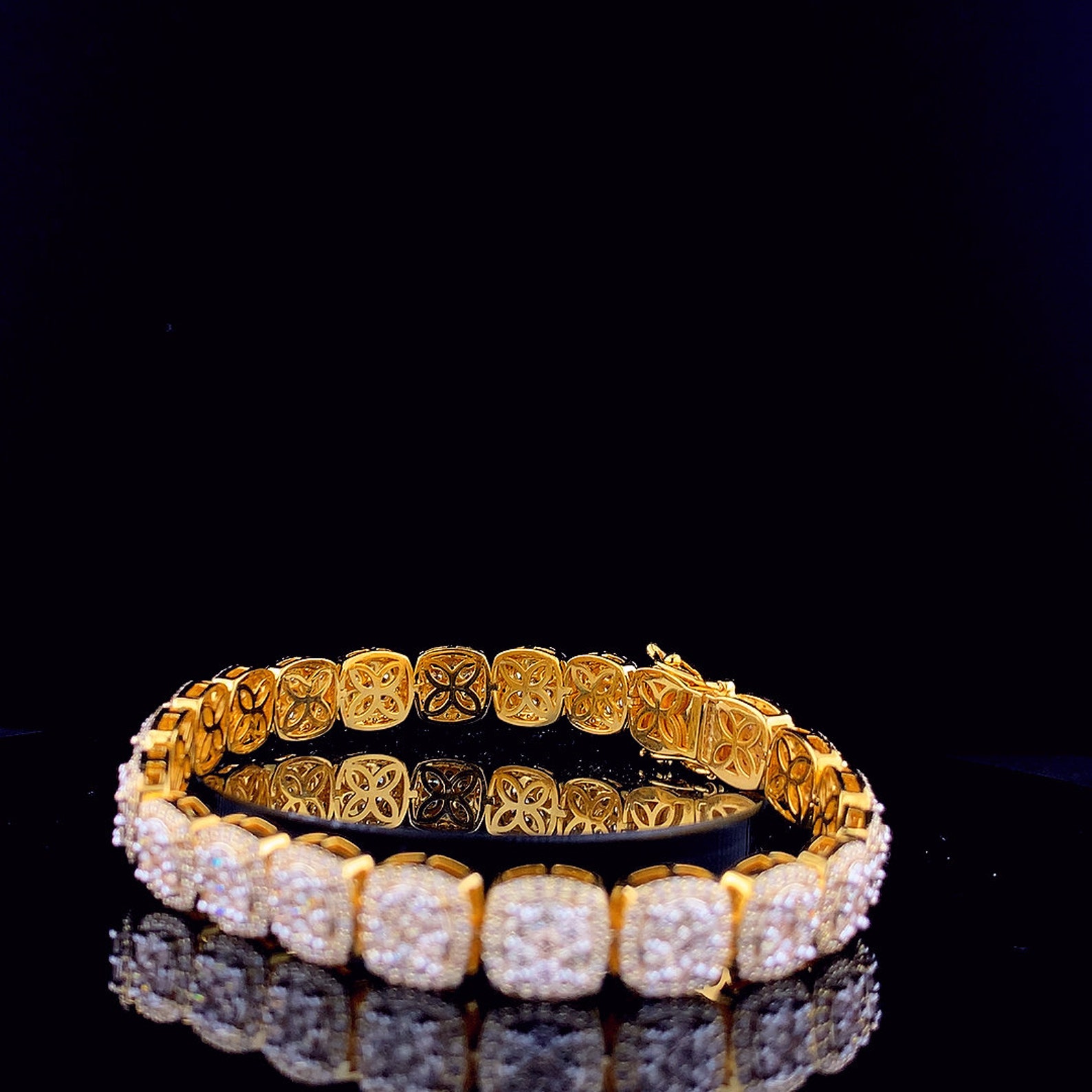 Iced Out Bracelet 9 mm 8″ Long Made in 10 / 14k Gold Studded with Moissanite Stone, Gift for Him, Tennis Bracelet, Flower Bracelet,