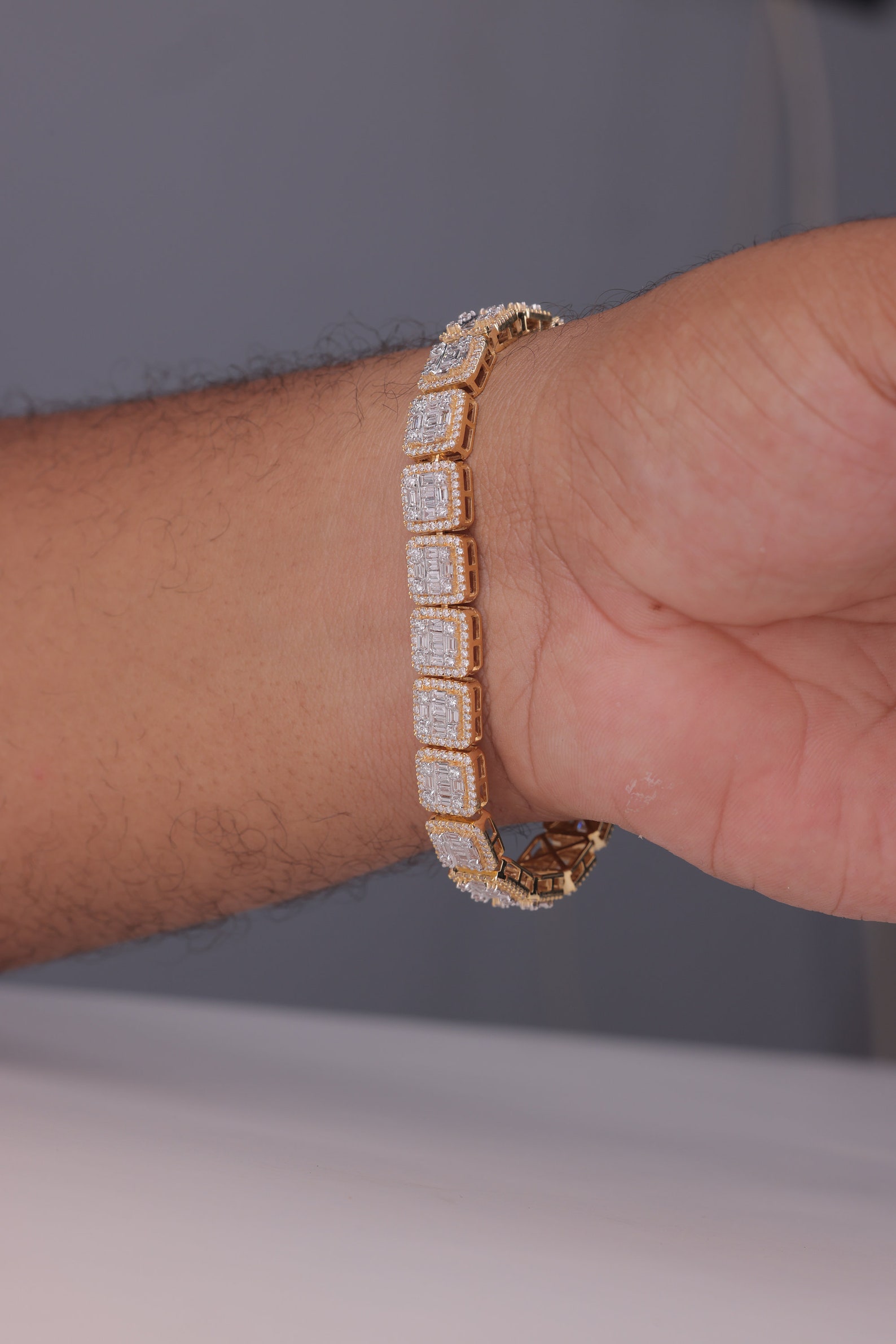 Chic and Classic Baguette Bracelet Embellished With VVS Moissanite Diamonds Made In 10 KT/14KTGold With Vintage Look For Anniversary Gift