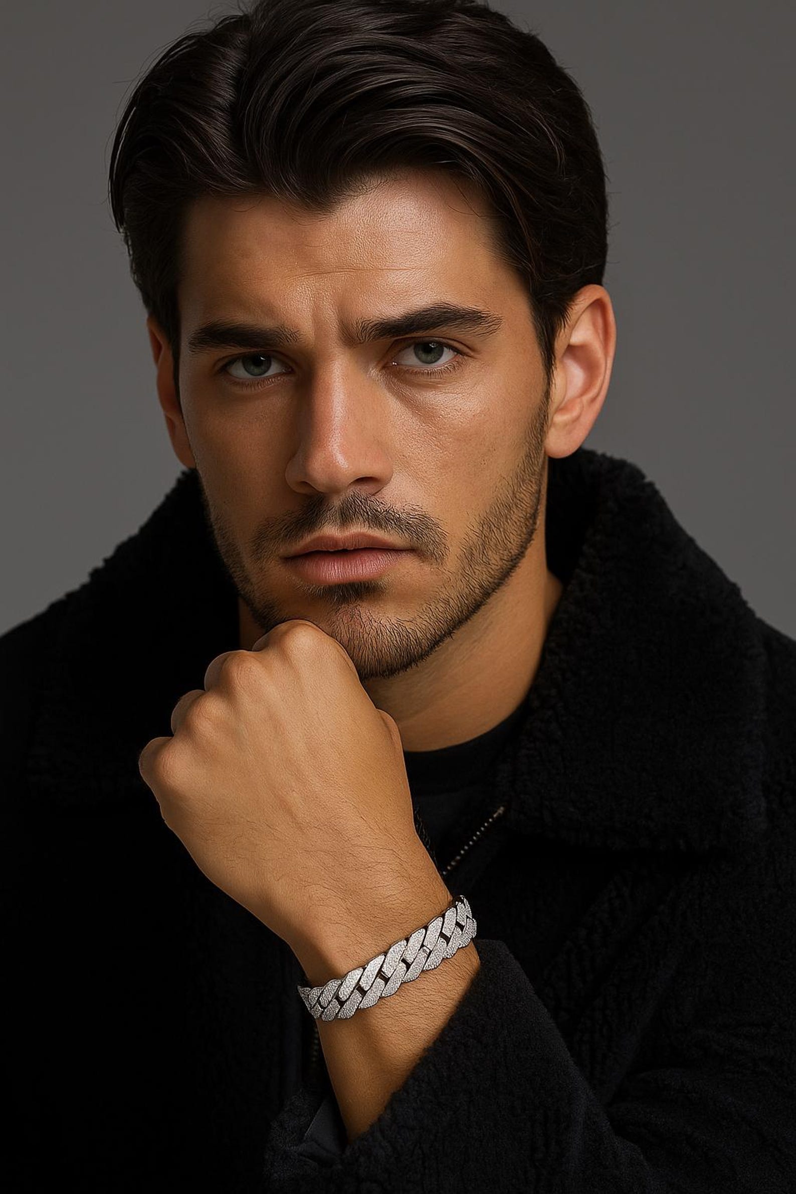 Iced Out 18 mm Miami Cuban Link Bracelet Made in 925Sterling Silver Studded With Shinny Moissanite Diamond For Birthday And Anniversary Gift