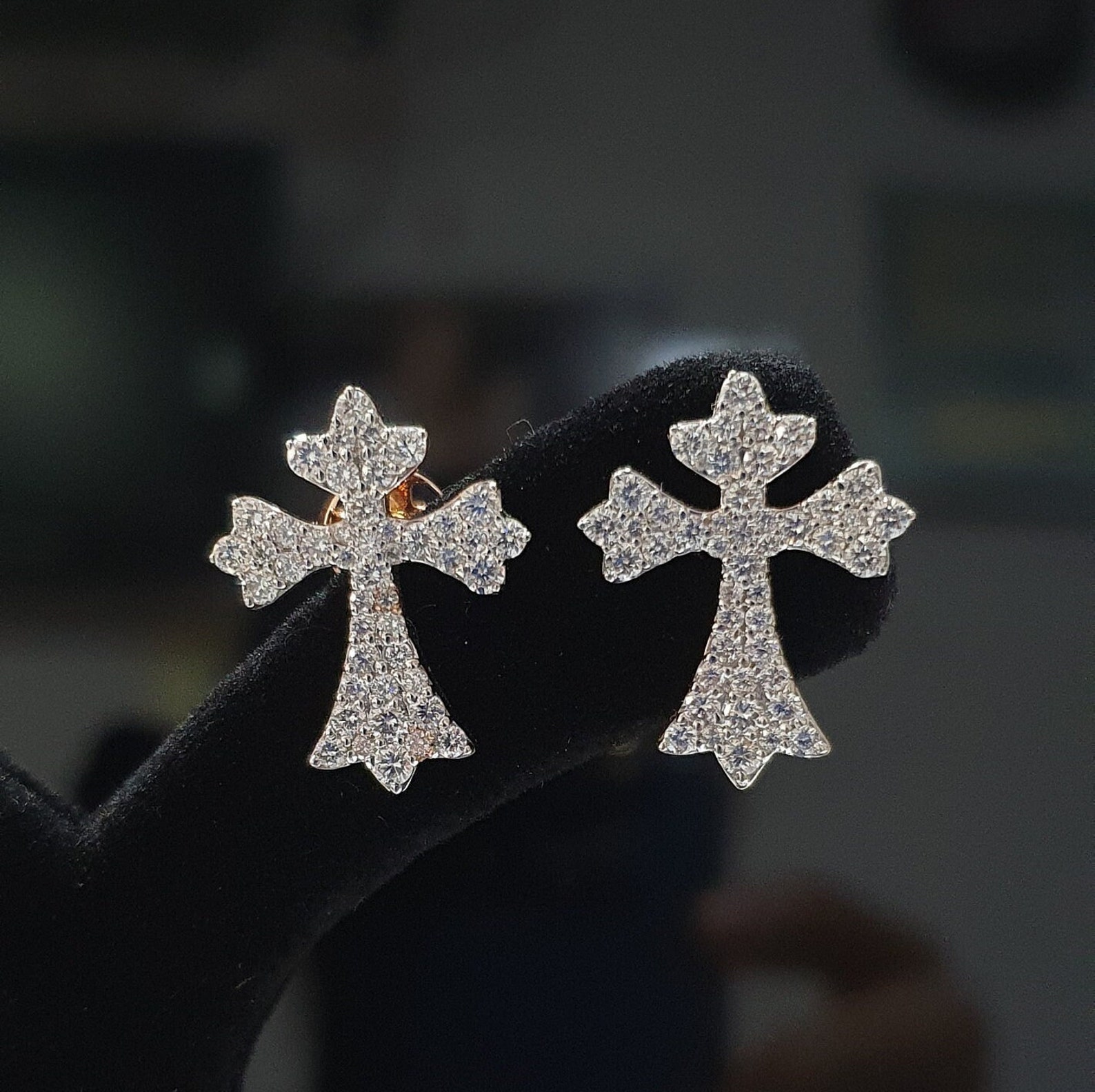 Beautiful Cross Earring Made in 10 / 14 KT Gold Embellished With Shinny Moissanite Diamonds For The Birthday Gift To Her