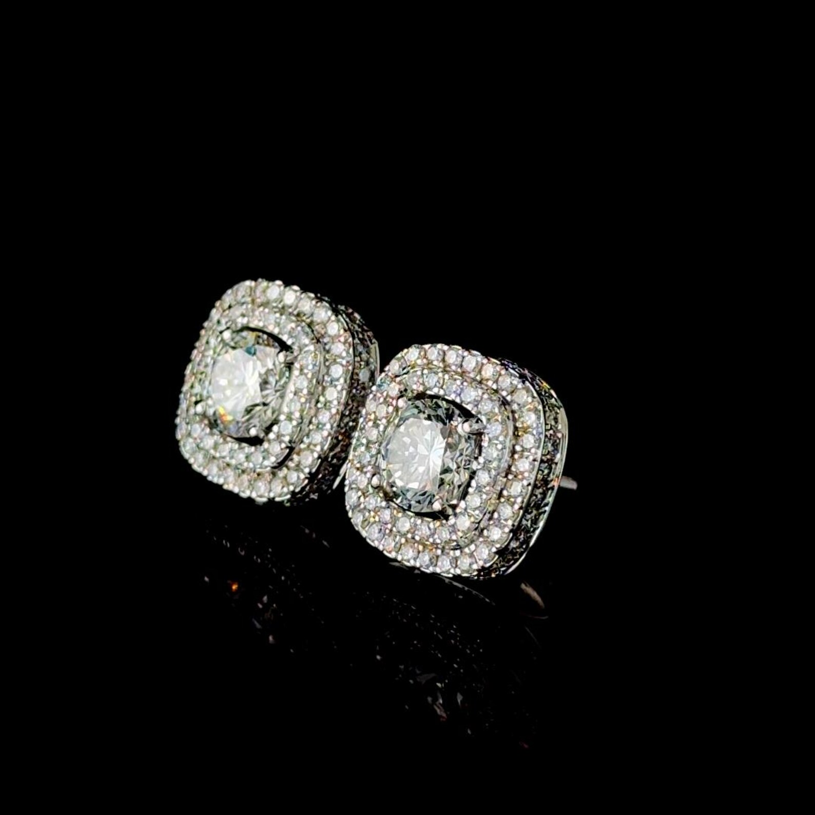 Dazzling Double Halo Bling Earrings Made In 18/14/10 KT Gold Studded With Shinny Moissanite Diamonds For The Birthday And Anniversary Gift